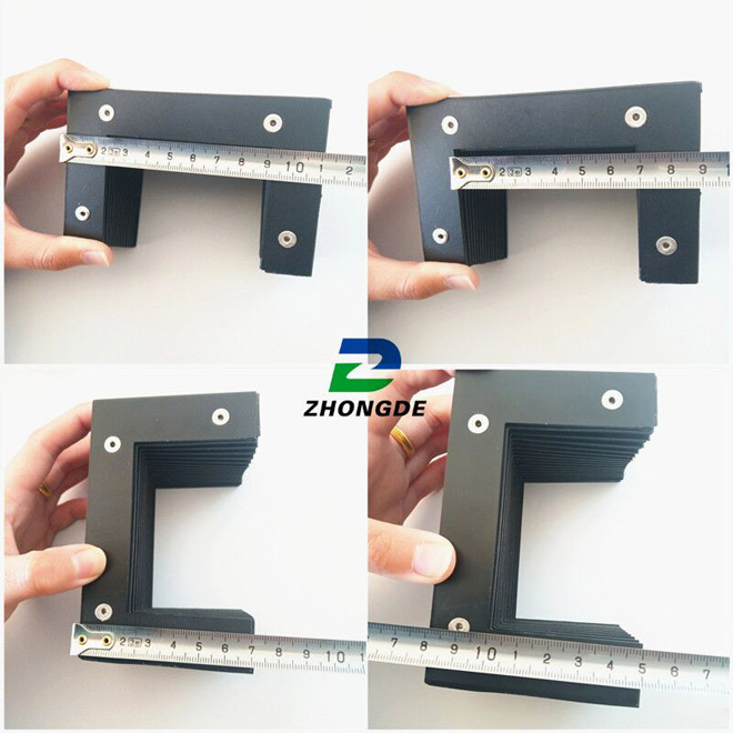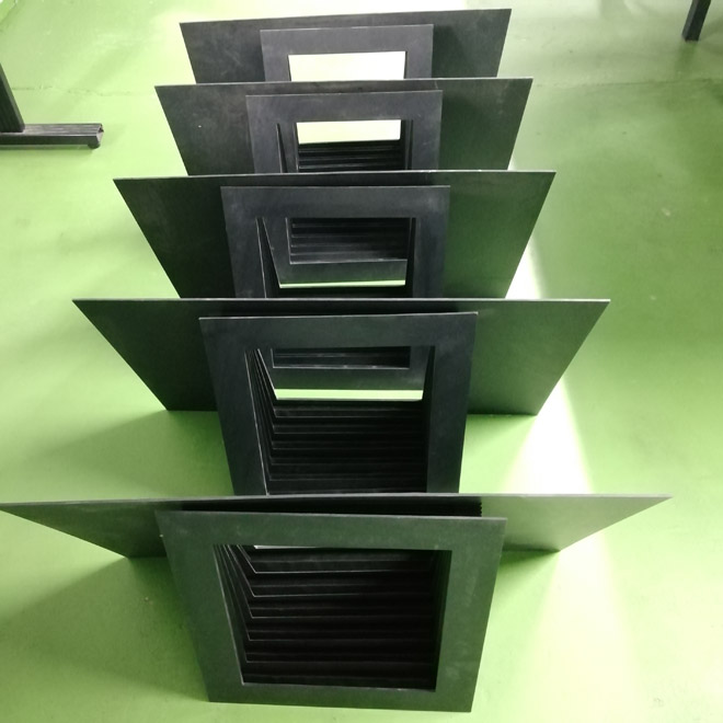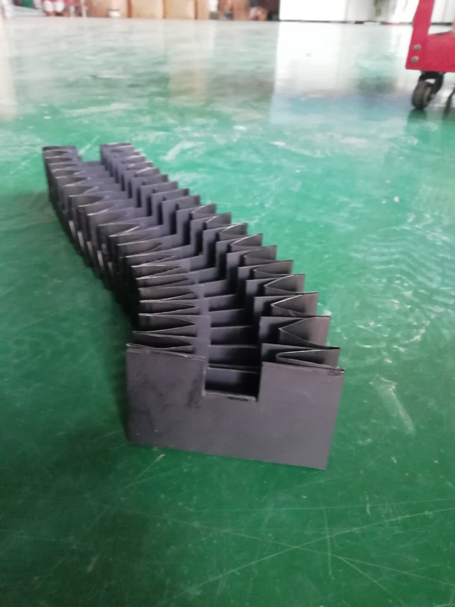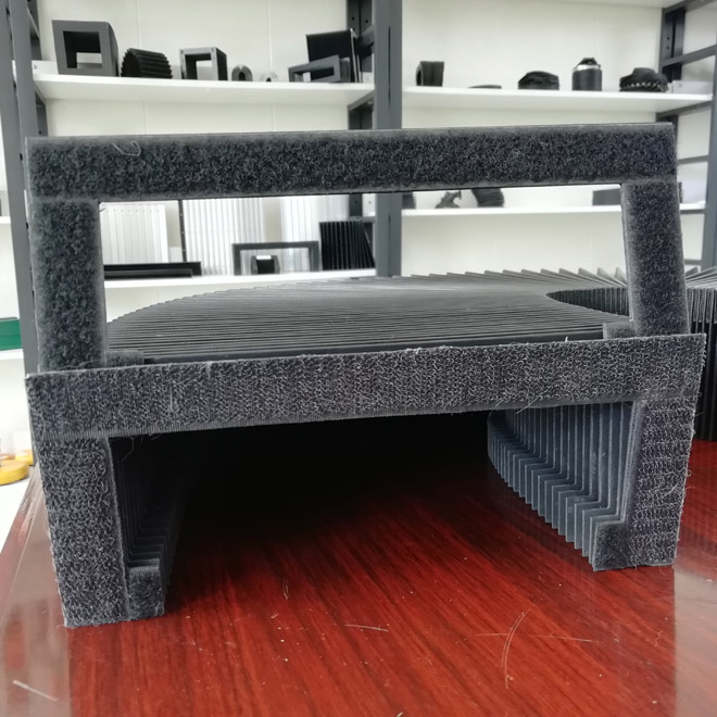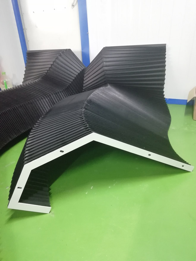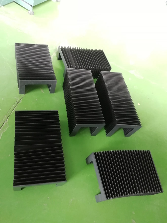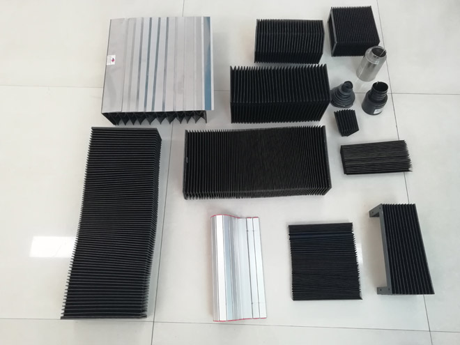 風琴式防護罩用尼龍革、塑料織物或合成橡膠折疊、縫制或熱壓而成,內有PVC板材支撐,可耐熱、耐油、耐冷卻液.