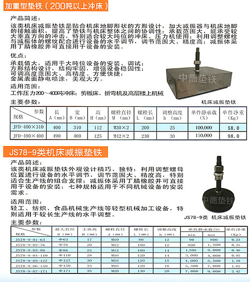 S78-13系列機床減振墊鐵產(chǎn)品特點: